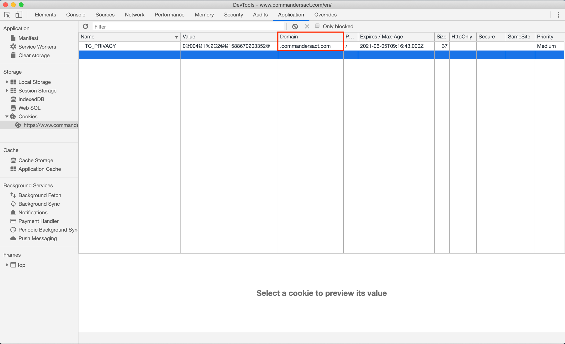 <figure><img src="https://1259070148-files.gitbook.io/~/files/v0/b/gitbook-x-prod.appspot.com/o/spaces%2F-Mk6XpTQ2LaRLcr2tA-d%2Fuploads%2Fgit-blob-5123a21bf601e62ed9517950426ce7d90d63754e%2Fimage.png?alt=media" alt=""><figcaption><p>Example of a 1st party cookie. The visitor is on www.commandersact.com which matches the cookie domain of .commandersact.com.</p></figcaption></figure>