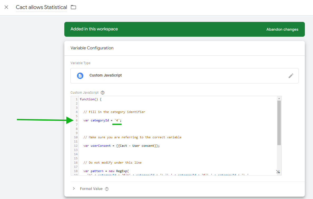 "Cact consent given Statistical" should also be reproduced and adapted for your other categories and coupled with custom triggers