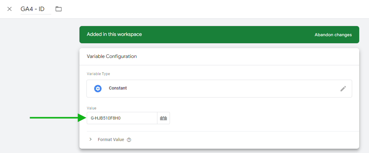 3. **"GA4 - ID"**: Change this value by your own GA4 - ID