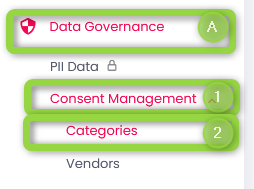 `(A)`"**Data Governance**" → `(1)`"**Consent Management**" → `(2)`"**Categories**".