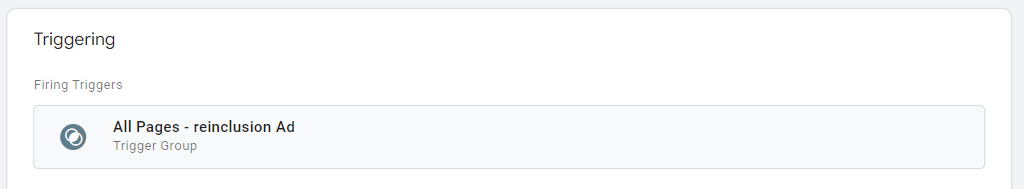 Then, you need to configure its triggers and this is where we're going to use our reactive events we prepared in the previous section. Locate the "**Triggering**" area in your tag configuration and add a "[**Trigger Group**](https://support.google.com/tagmanager/answer/9164222?hl=en)".