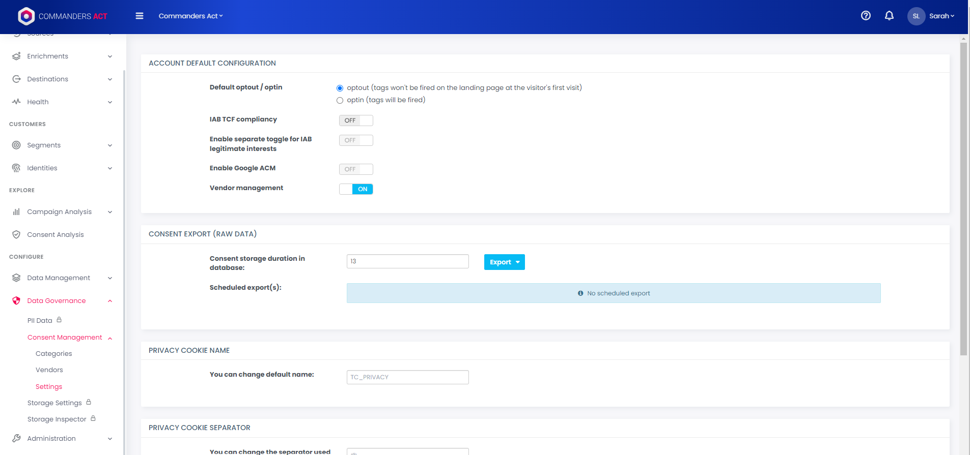 Changing the cookie name, separator or subdomain can have unwanted side-effects depending on your Commanders Act consent setup. Please contact your Commanders Act consultant or support before applying changes.