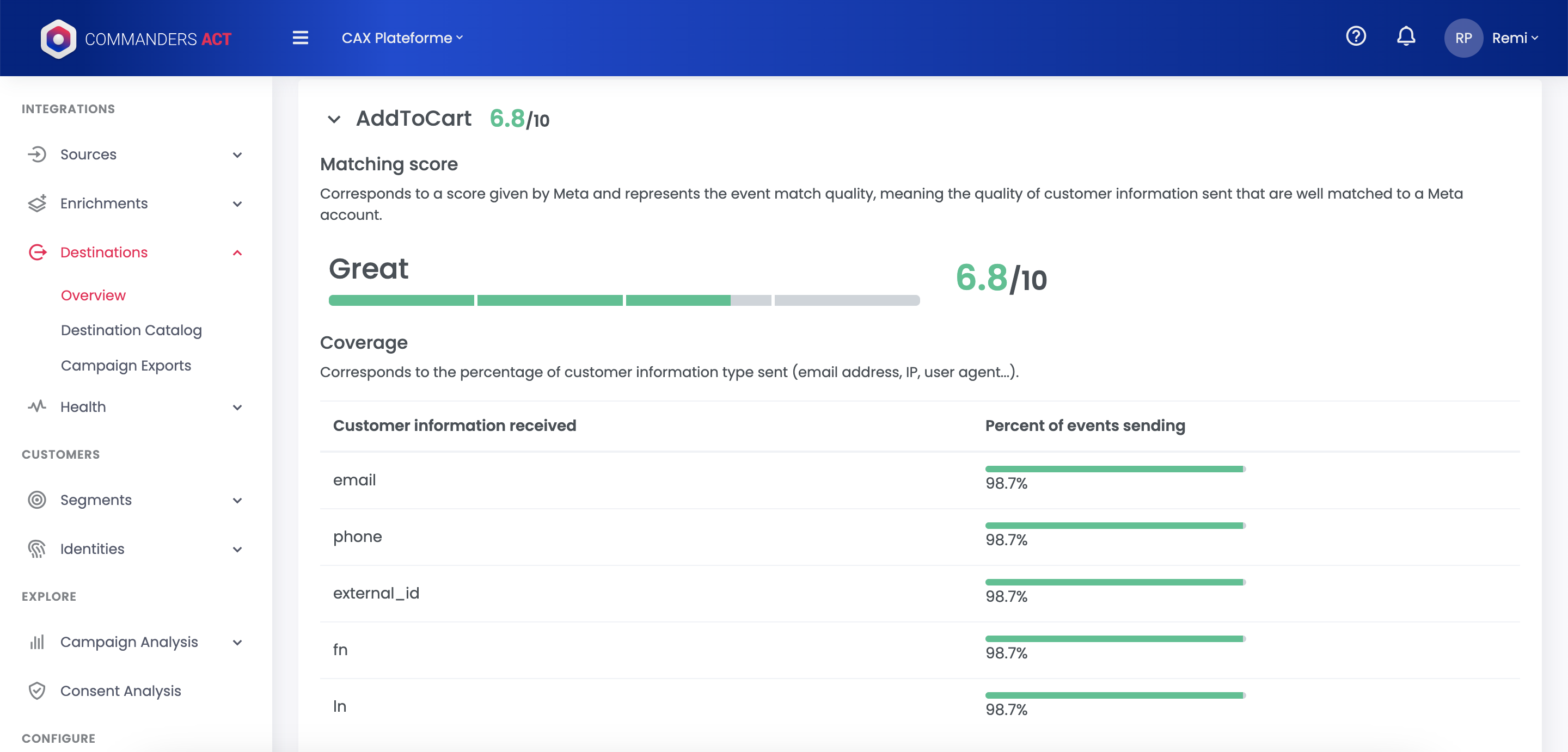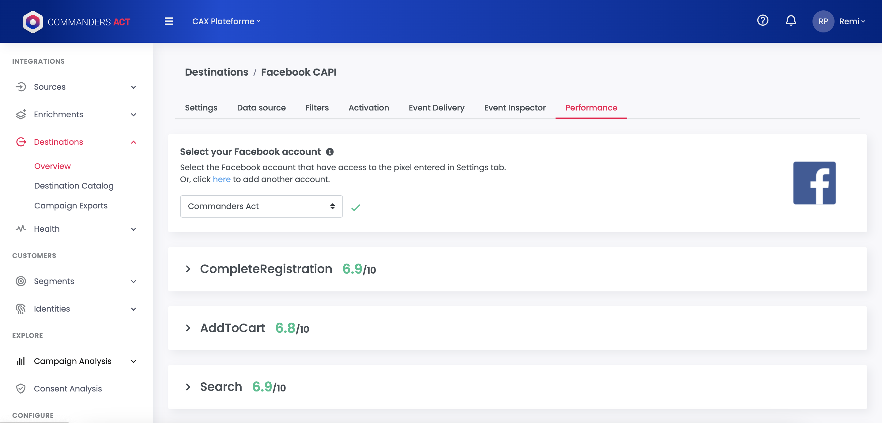The Performance tab can now display Event Match Quality insights, coming from Facebook. It represents the matching quality, referring to the quality of events sent (completeness of data, like events with email, phone, fbp, fbc...). More identifiers are present on events sent, better is the score.