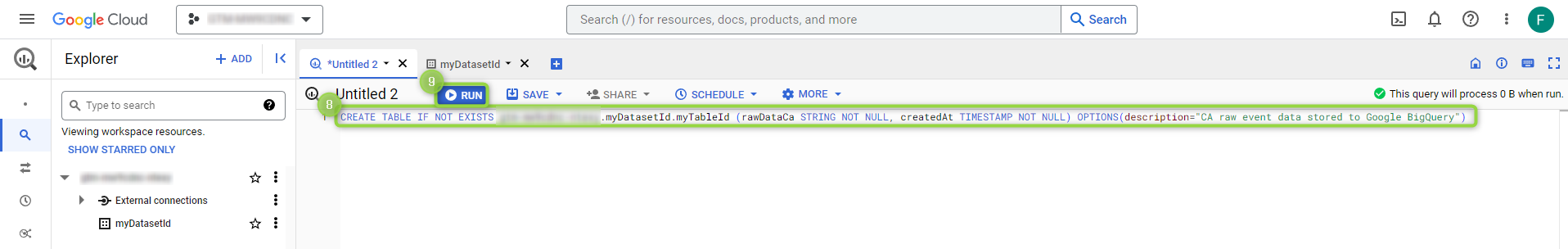 <figure><img src="https://1259070148-files.gitbook.io/~/files/v0/b/gitbook-x-prod.appspot.com/o/spaces%2F-Mk6XpTQ2LaRLcr2tA-d%2Fuploads%2Fgit-blob-e7aaa476a4dbea3efe1c022045fa41fadf878af5%2Fbigquery_4.png?alt=media" alt=""><figcaption><p>Run table creation query.</p></figcaption></figure>