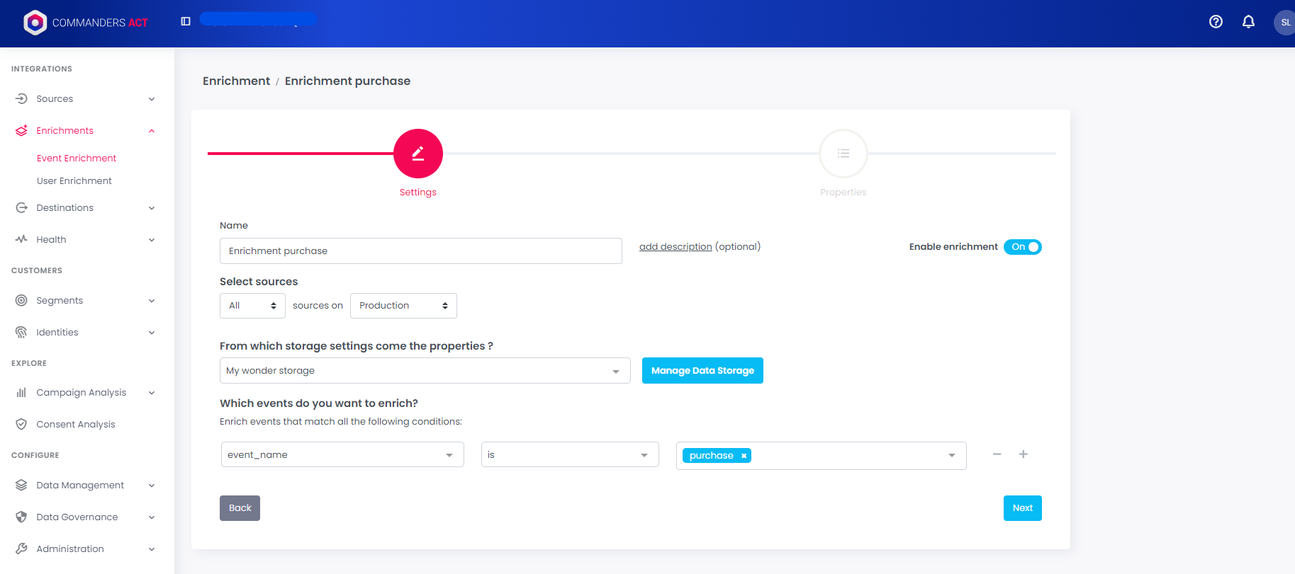 To learn more about how to use this feature, and get tips about Storage Settings creation, please [read the dedicated page](https://doc.commandersact.com/features/enrichments/storage-settings)\\
