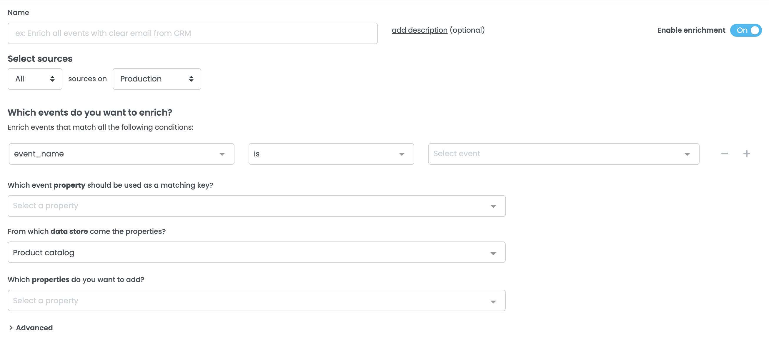 Select to which sources and events the enrichment will be applied.