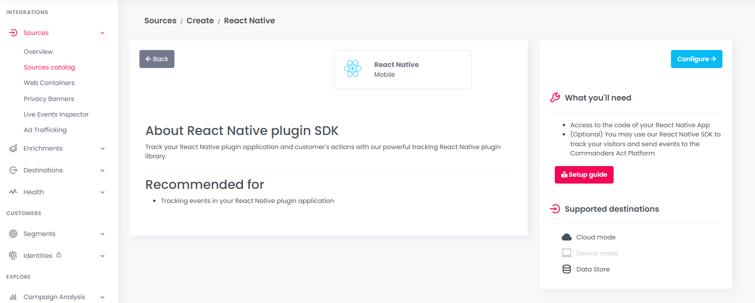 To send events to Commanders Act you need a Source Key. To get it, you can use the dedicated Source on our platform.