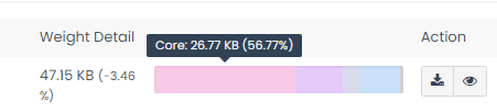 The “Weight Detail” section shows the container’s size (in GZIP format), its change in size since the last deployment as well as the percentage of space occupied by each of the following container elements: