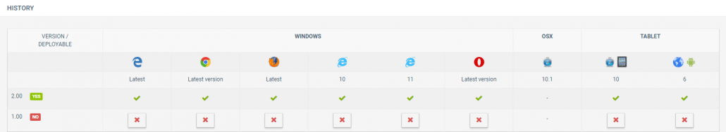A total of 8 browsers/OS are tested:
