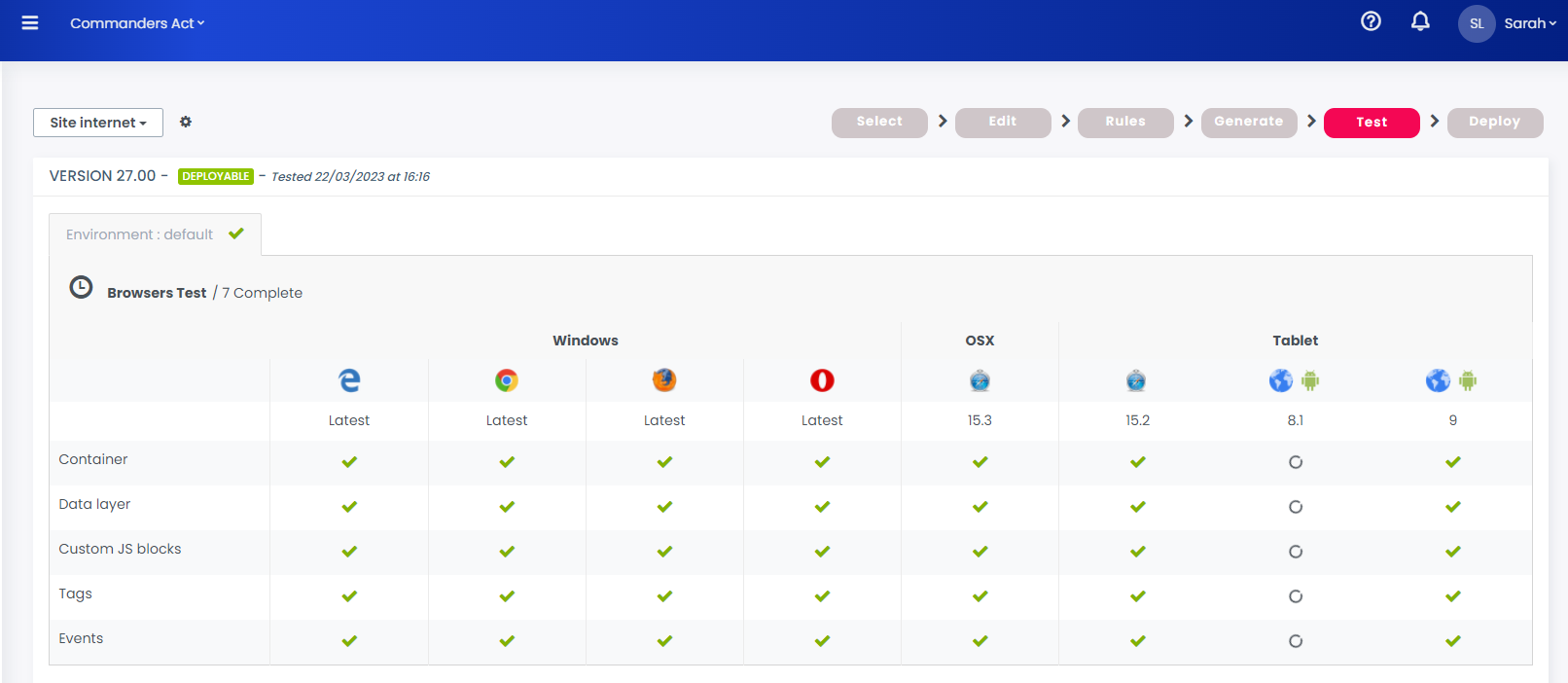 If no errors are detected, your version is “DEPLOYABLE”: