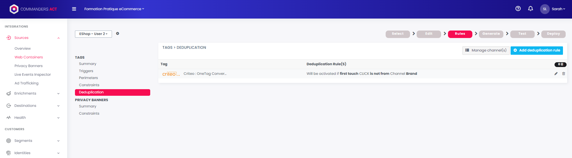 Click the edition tab and go to the Rules step. Once there, click “Deduplication” on the menu to the left.