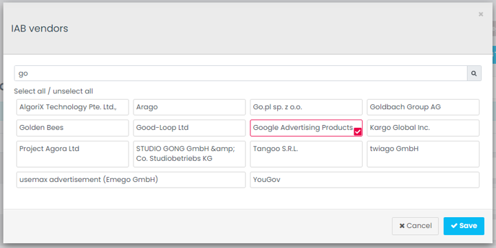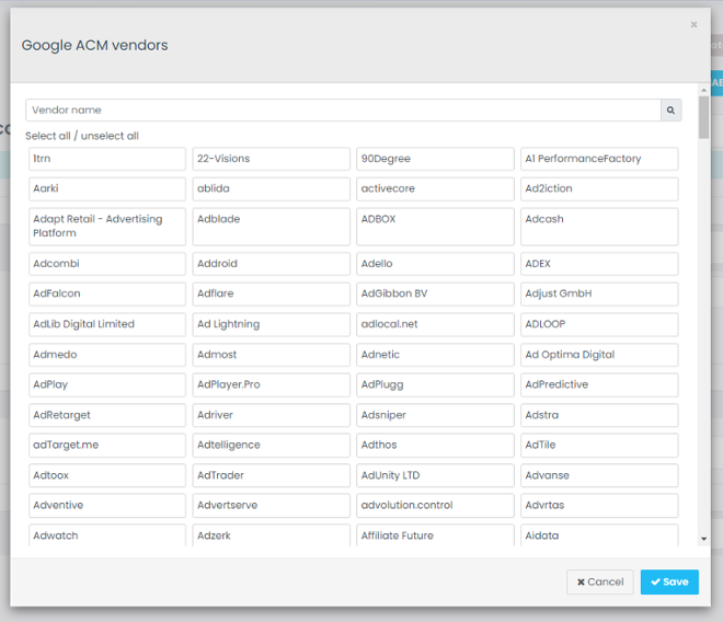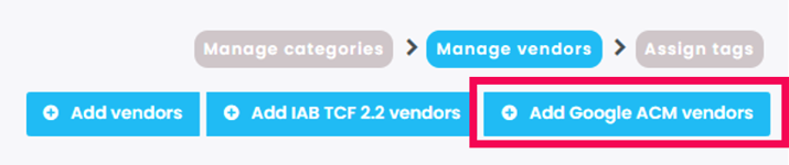 * Situation n°2 et n°3 : Ajoutez vos Google ACM Vendors