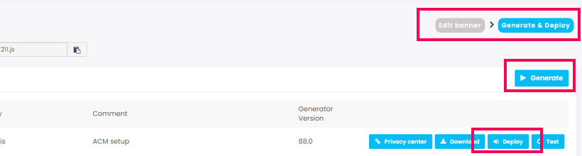 • Générez votre nouvelle version de la bannière de confidentialité\