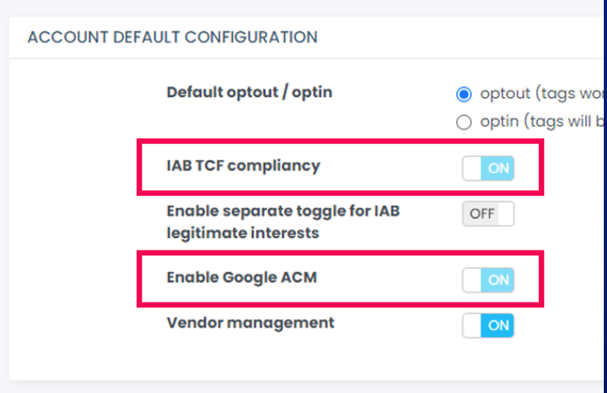 * Situation n°3 : Activez les options IAB TCF Compliancy & Google ACM