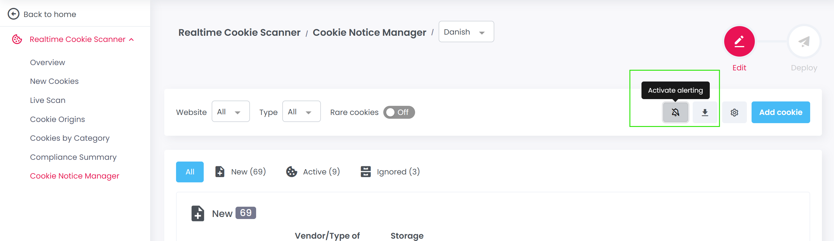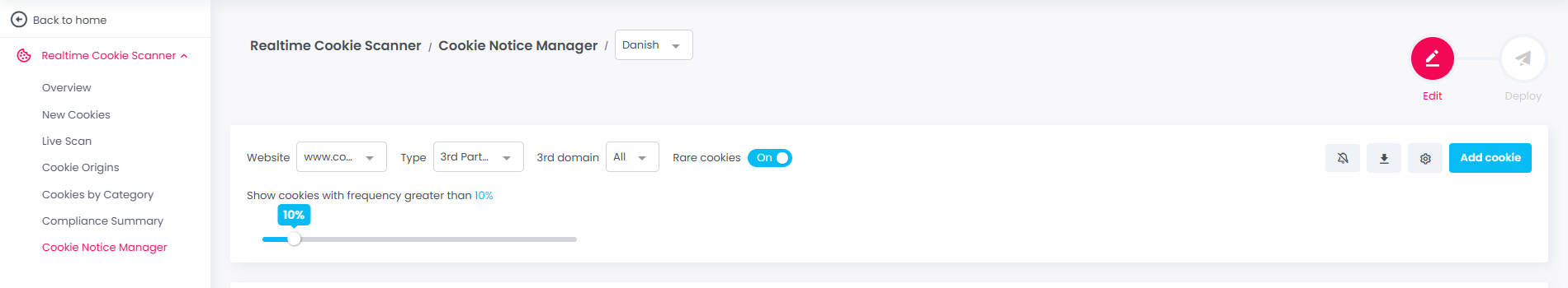 `Cookie Notice Manager > Deploy tab`