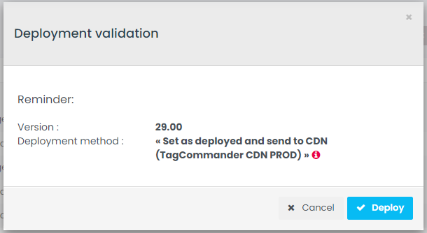 Une fois la version et la méthode de déploiement sélectionnées, une fenêtre résumant le déploiement apparaîtra. Cliquez sur «Déployer» pour valider :
