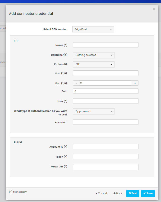 Configurez la partie "Purge" (utilisez l’Account ID, le Token et l’URL de purge fournis par votre fournisseur de CDN)