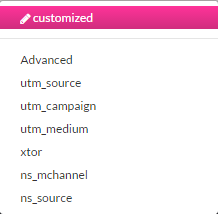 2. Dans le menu qui apparaît, sélectionnez le paramètre qui stockera l’information définissant le canal (il existe des paramètres par défaut tels que ceux utilisés par Google Analytics, AT Internet ainsi que la possibilité d’ajouter des paramètres personnalisés).