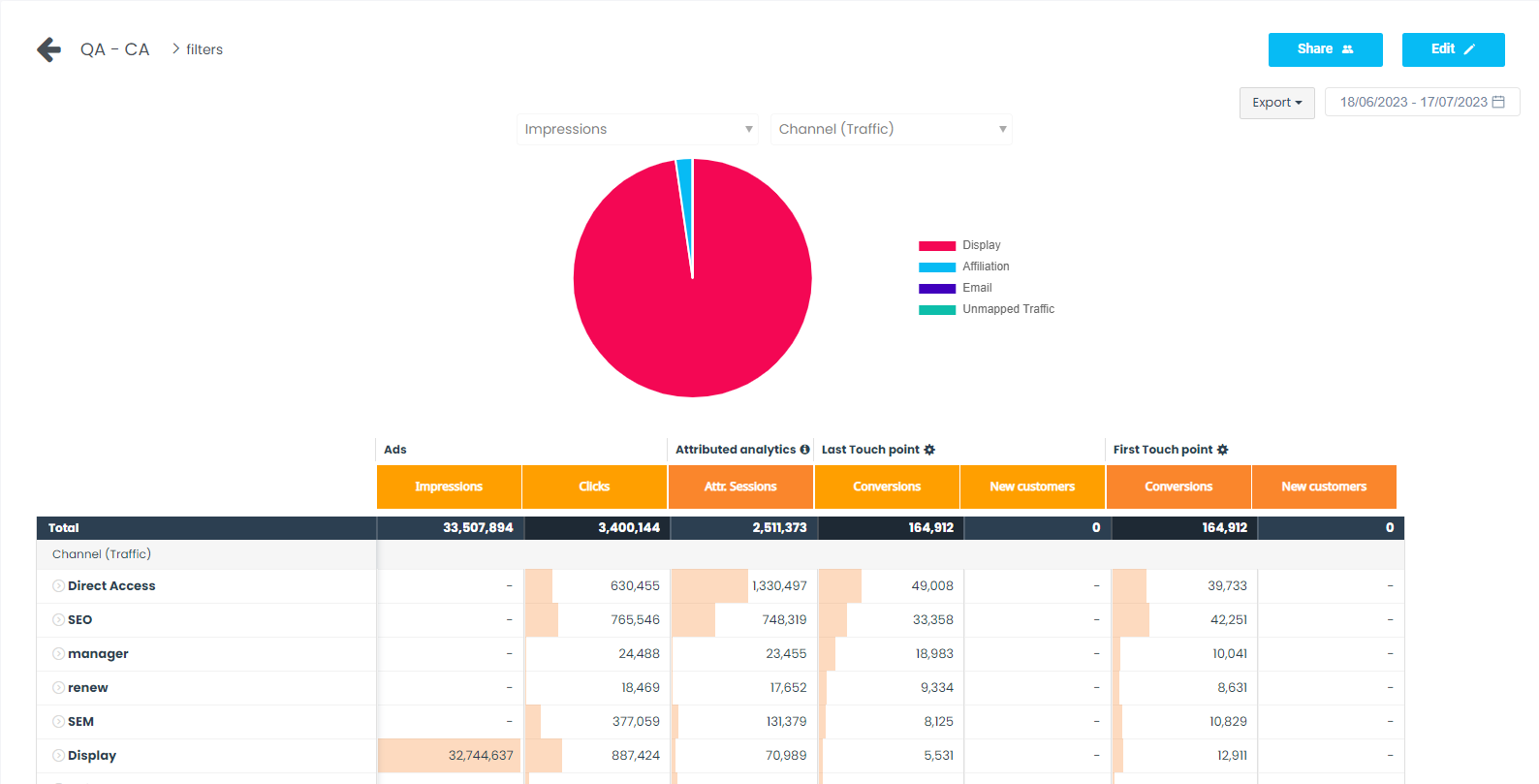 * Live report builder: you can now change in live the attribution model without having to edit the report\