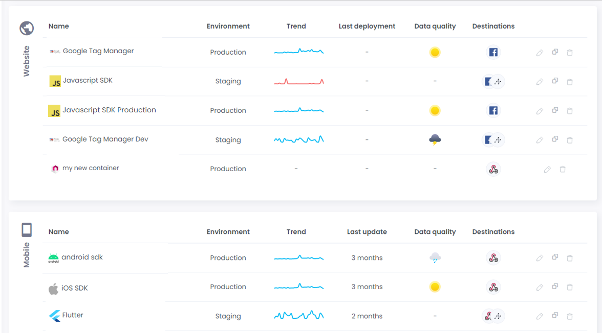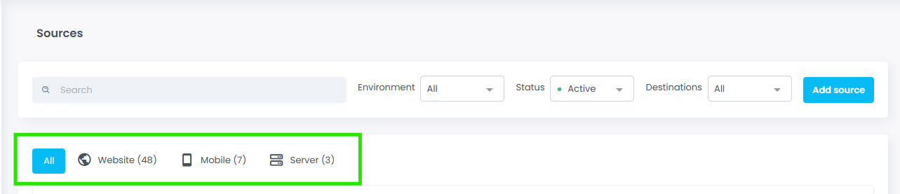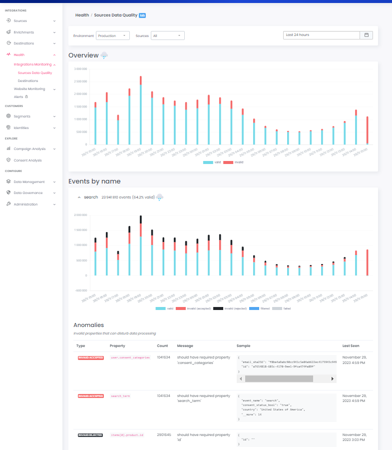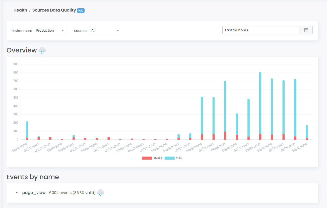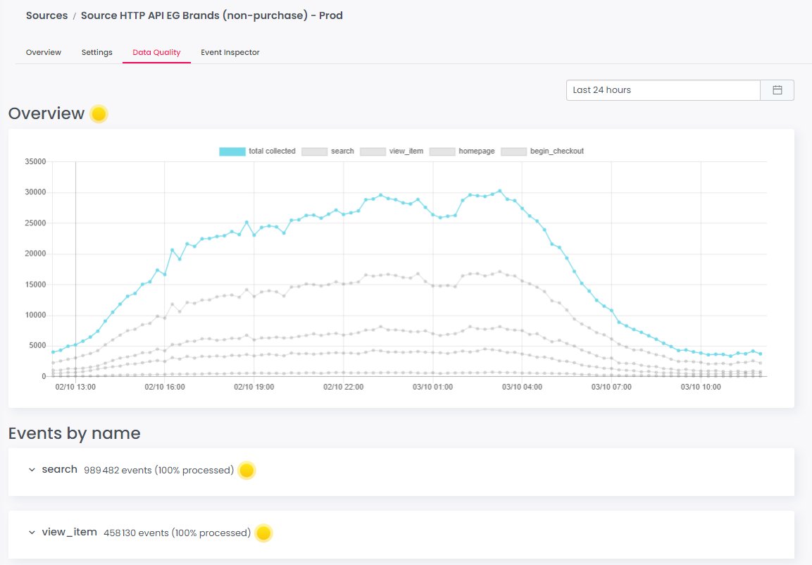 Follow your events arriving at the platform in near-realtime, understand which source send it and which destinations are using it.​\