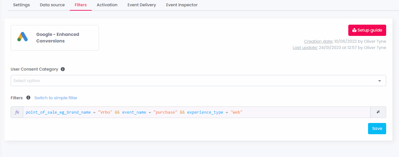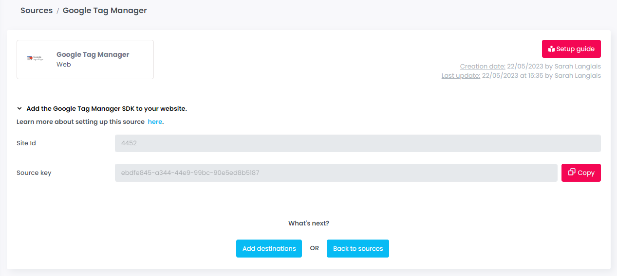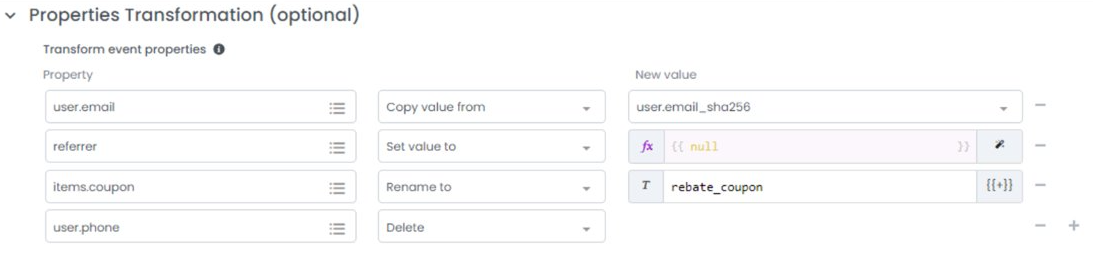 * Enhancement on existing destinations : Piano Analytics, Snapchat and Google Enhanced conversions