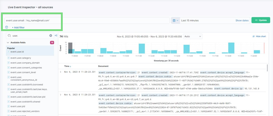 * Live Events Inspector for sources, available both in Sources menu (for all sources) and on each source (tab Event Inspector). It allows to inspect/debug your incoming events​
