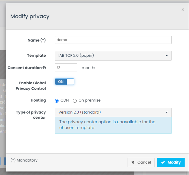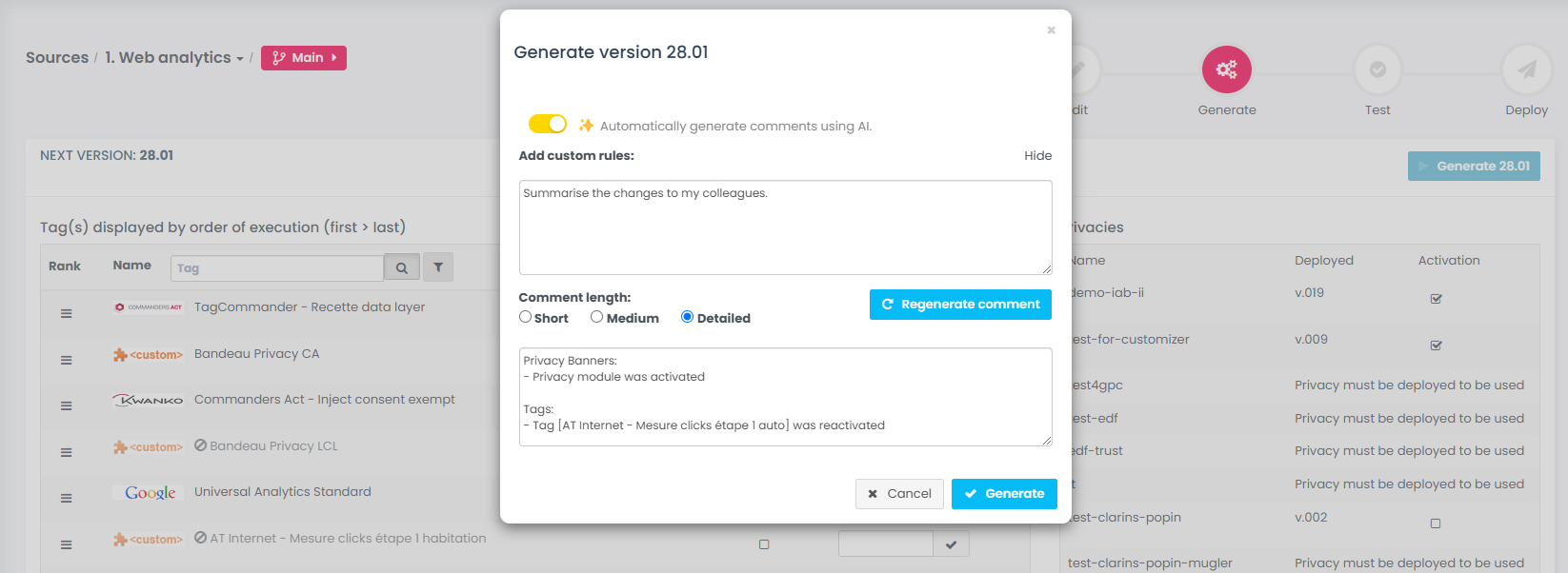 Activation is simple: select the new Privacy Center template in your banner settings, regenerate the banner, and deploy.