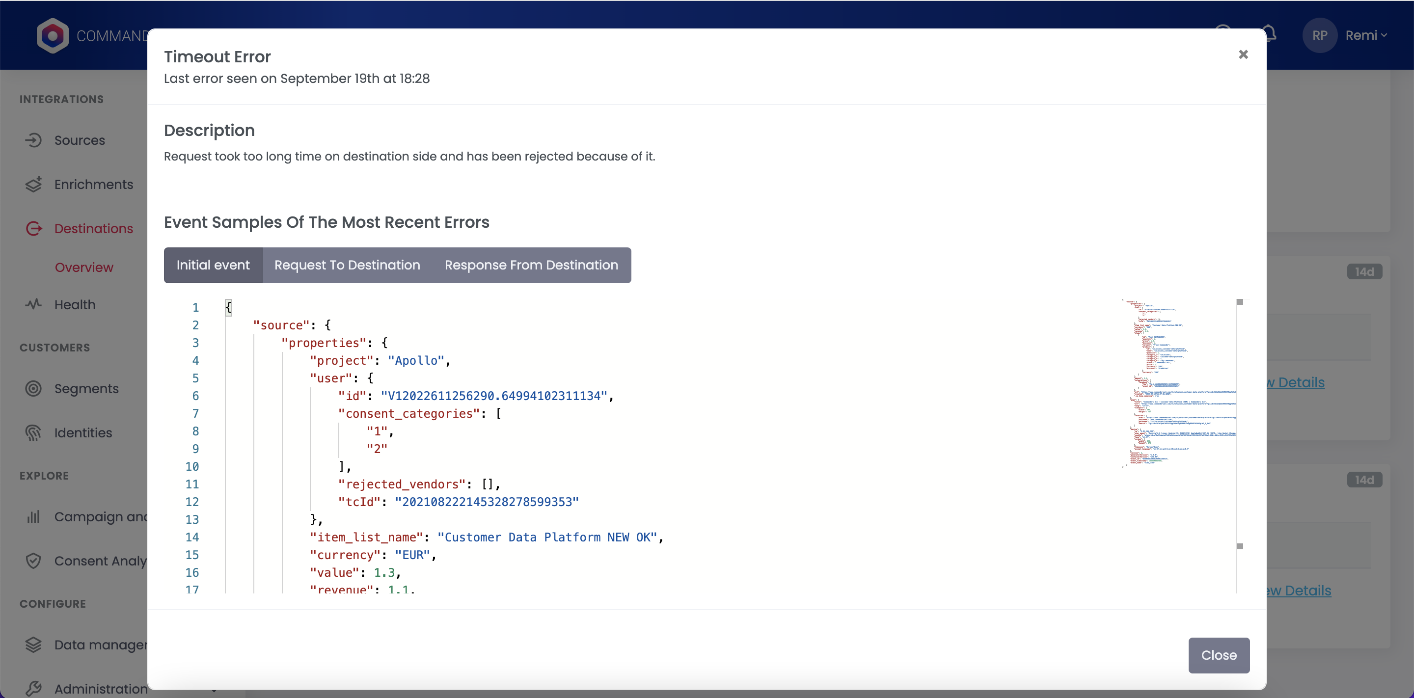 * Event delivery detail popin now shows also the intial events beside the destination hit and response. It allows to easily understand if there is wrong or missing properties in the original event\ <img src="https://1259070148-files.gitbook.io/~/files/v0/b/gitbook-x-prod.appspot.com/o/spaces%2F-Mk6XpTQ2LaRLcr2tA-d%2Fuploads%2Fgit-blob-a7d62e5adfd1f3e77d7a94a9d171a2b5d362babd%2Fimage.png?alt=media" alt="" data-size="original">
